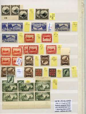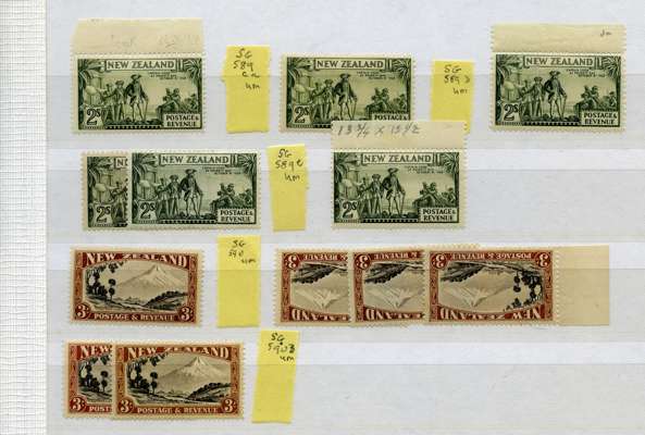 1936-42 Multiple watermark Pictorials mint collection (99) on two stocksheets, unmounted o.g. except where stated. Perfs complete unmounted except for SG 581, 585 (hinged), 589 and 589c. Valuable extras with ½d clematis flaw, SG580c, d, 581aw, 581bw (hinged), 582w, 583aw (4), 584aw, 585aw, 586aw, 588aw (2), 589ca and da each top marginal and 590aw (3). Fine lot. SG 577/590c