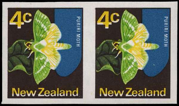 1973-6 4ct Puriri Moth no watermark imperforate horizontal pair, unmounted o.g. SG 1011 var, CP P6c(Q)