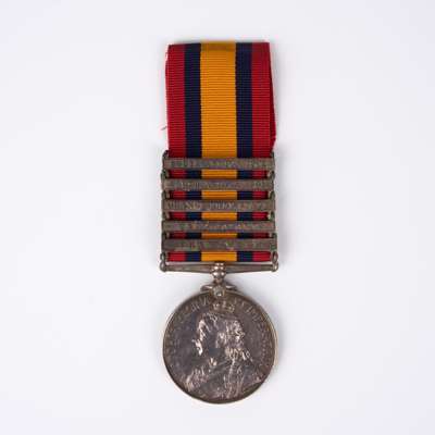 The Queen’s South Africa Medal awarded to Private E. Jones Volunteer Company The Cheshire Regiment, comprising Queen’s South Africa Medal 3rd type, 5 clasps, Transvaal, Cape Colony, Orange Free State, South Africa 1901, South Africa 1902, (7544 Pte E. Jones. Vol: Coy Ches: Regt), very fine (1)
