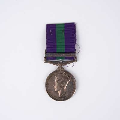 The General Service Medal, awarded to Bombardier Gordon Raistrick 6th Field Regiment Royal Artillery comprising General Service Medal, 1918-62, GVIR, one clasp Palestine 1945-48, (887641 Bdr. G. Raistrick. R.A.), toned fine (1)