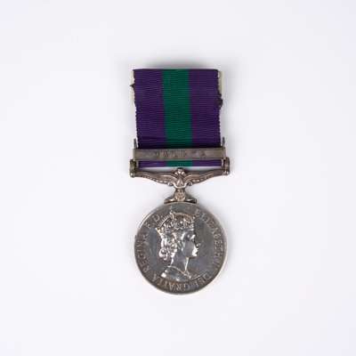 A General Service Medal awarded to Private P. Jones Cheshire Regiment comprising General Service Medal 1918-62, GVIR, one clasp, Malaya, (23197594 Pte. P. Jones. Cheshire.), mounted on pin for wear, very fine (1)