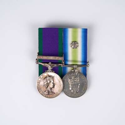 The Northern Ireland Op Banner and South Atlantic Pair awarded to Marine G J Izzard, Royal Marines comprising General Service Medal 1962-2007, one clasp Northern Ireland, (Mne G J Izzard PO38414P RM), South Atlantic Medal 1982 with Rosette, (Mne 1 G J Izzard PO38414P RM), contemporarily mounted for wear, very fine (2)