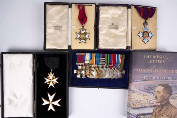 The Very Impressive Group of 14 awarded to Lieutenant General Frederick Vavasour Broome Witts, CB, CBE, DSO, MC late Royal Engineers comprising, Companion of the Bath, C.B. (Mily), neck badge gilt, Commander of the Most Excellent Order of the British Empire, C.B.E. (Mily), neck badge, Distinguished Service Order, GVR, Military Cross, GVR, Knight of Grace of the Order of St John, Neck Badge and Breast Star all unnamed as issued, 1914-15 Star, (Capt F.V.B. Witts. R.E.), 1914-1920 British War and Victory Medals with Mentioned in Despatches emblem (Major F.V.B. Witts.), General Service Medal 1918-62, GVR three clasps, Kurdistan, Iraq, Palestine, (Major F.V.B. Witts.), 1939-45 Defence Medal, engraved (Major General F.V.B. Witts), 1938-45 War Medal, privately engraved, (Major General F.V.B. Witts), Jubilee Medal 1935, unnamed as issued, Coronation Medal 1937, unnamed as issued, French Croix De Gurre with Bronze Palm, unnamed as issued, contemporarily mounted for wear, C.B., C.B.E. and Knight of Grace of the Order of St John all in Cases of issue. Very fine (14)