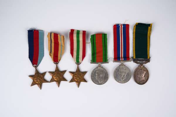 Efficiency Medal awarded to Staff Sergeant G. Beal Intelligence Corps comprising, 1939-45 Star, Africa Star, Italy Star, 1939-45 Defence Medal, 1939-45 War Medal, all unnamed as issued, Efficiency Medal, GVIR, Territorial Suspender, (324975 S. Sjt. G. Beal. Int. Corps.), toned very fine (6)