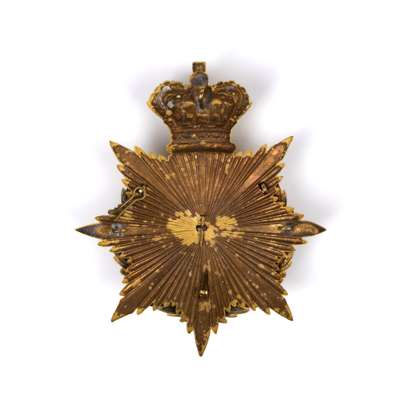 The Cheshire Regiment, an exceptionally fine officers helmet plate, 1881-1901, standard Queen Victoria Crown, gilt back plate and overlay with silver title scroll and silver centre, black velvet backing, together with a fine officer’s Bronze first pattern cap badge, blade fastners, excellent condition (2)