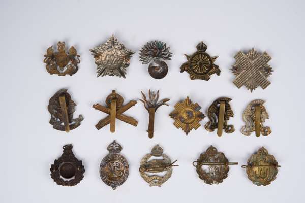 16 British and Commonwealth cap badges, loose in envelope