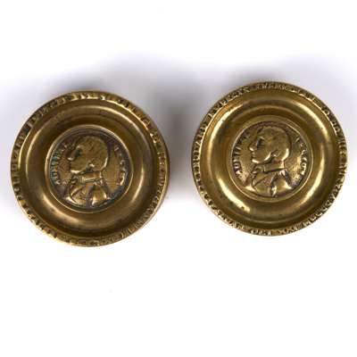 Two Brass Turned Snuff Boxes Depicting Admiral Lord Nelson with the inscription to the rim (England Expects Every Man To Do His Duty Oct XXI MDCCCV), rubbed (2)