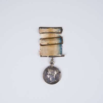 Approximately 120 medals with the Meeanee reverse were issued to European recipients, of which 40 were to naval personnel. It is not known what caused the damage to Wyllie’s medal but it is clear that he obtained an official replacement which was issued many years later with scroll suspension and named in small impressed serif capitals. This replacement issue, together with an unnamed Ghuznee medal and G.C.B. insignia, was sold at Glendining’s in June 1988.