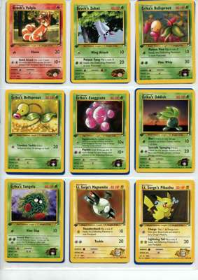 This lot contains a complete Pokemon 1st Ed Gym Heroes set.
