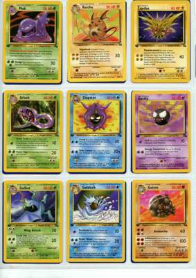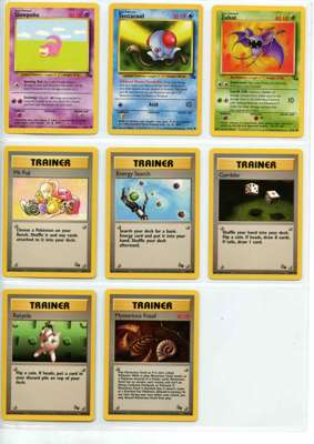 This lot contains a complete Fossil expansion. This full set features a mixture of 1st edition and unlimited cards with the vast majority of common & uncommon cards 1st Edition. The cards in this set range from near mint to lightly played but the overall condition of this set is near mint.