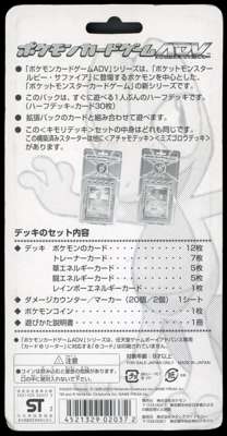 The Treeko Constructed Starter Deck is a Japanese-exclusive Half Deck Starter Deck. It features a 30 card deck that includes Scyther ex later released in English in Ex Ruby & Sapphire Base Set.