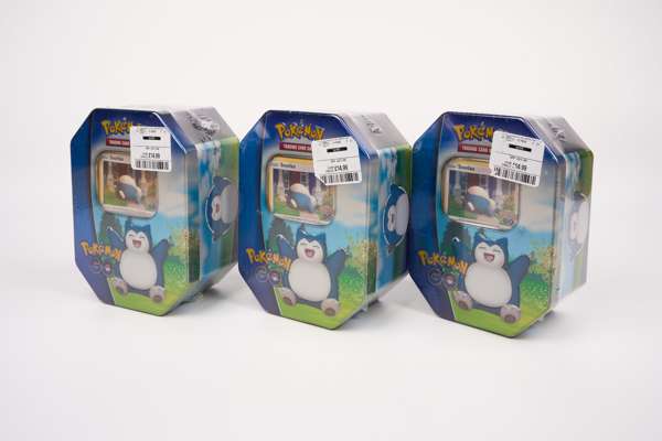 This lot contains x3 Snorlax Tins from the Pokémon GO Special expansion. Each tin contains x4 Booster Packs of Pokémon GO, as well as a Holographic Promo Snorlax card, and a Holographic Promo Pikachu card.