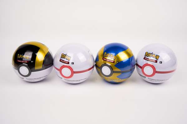 This lot contains x4 PokéBall Tins from the SWSH era of cards. x2 Premier Balls, 1 Ultra Ball and 1 Quick Ball. They are all marked with D23 on the bottom, this code is generally considered to indicate which sets are in the ball.