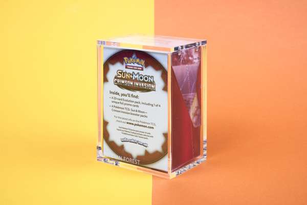 This lot contains a sealed Crimson Invasion expansion prerelease kit. It is stored in an acrylic protector from Viridian Forest.