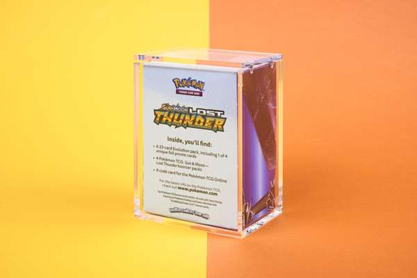 This lot contains a sealed Lost Thunder expansion prerelease kit. It is stored in an acrylic protector from Viridian Forest.