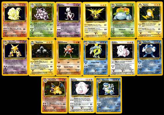 Featuring all the holographic cards apart from a Machamp, this set includes the coveted Charizard, Venusaur and Blastoise and 15 holographic cards in total. The holos in this bundle are all between very light play and near mint condition with the only visible imperfections is slight 'silvering' around the edges of some of the cards.