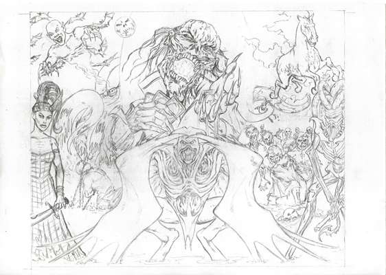 This lot contains an Original facsimile from the magic the gathering artist Pete Venters. This artwork was done exclusively for the UK ‘fanzine’ From The Mana Born, this artwork was originally done in 1994 and features iconic ‘black’ cards from the early days of Magic the Gathering, this is the sketch variant.
