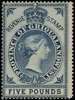 1879 ‘Bourne Head’ issue £5 blue, fresh unmounted o.g. and very rare thus. Centred left and with a minuscule pin hole just above perfs at lower edge, still an extremely rare stamp this fine, and one of the most iconic revenues of the British empire