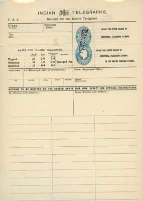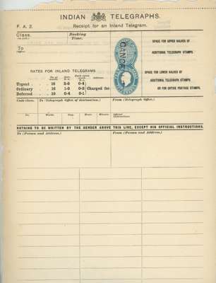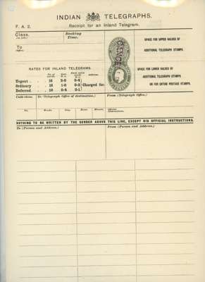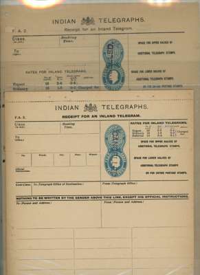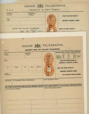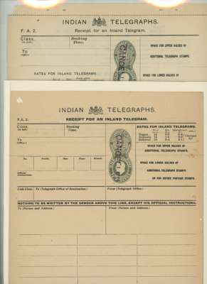 India 1908 Telegraph forms handstamped CANCELLED