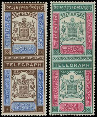Jammu & Kashmir Telegraphs No Wmk 2r & 5r SG T20/1