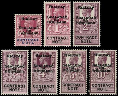 Contract Note: 1921 ‘RIALTAS’ overprints on GB, 6d, 1s, 2s, 3s, 4s, 5s and 10s, each fine and fresh large part o.g. Rare.