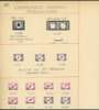 Agricultural Unemployment Insurance: 1936 Provisional issue, Ledger page (225 x 237mm) bearing FIFTEEN stamp-sized die proofs in black on glazed card, with appropriate M/S captions of all die numbers, each handstamped 'CANCELLED' in red. The first section showing the master die of the frame with uncleared surround and centre, the “2 SET KEY” after the plate had begun to be made up and a proof of the provisional ‘AGRICULTURE’ overprint forme, Section two with three by BICOLOUR proofs denominated 1d 1½d and 3d with value added in red to black frames, the third section with 3½d, 4d, 4½d, 7d, 8d, 9d, each with completed overprint and value tablet in black with frames in red, the final two die proofs without ‘AGRICULTURE’ overprint denominated 4s8d ad 15s2d. A wonderful and unique array of proofs, from the proof book presented to Royal Mint engraver H. A. Richardson on his retirement (when the red 'CANCELLED' handstamp was applied). A truly wonderful item of the highest importance to the issue which is ripe for further research.
