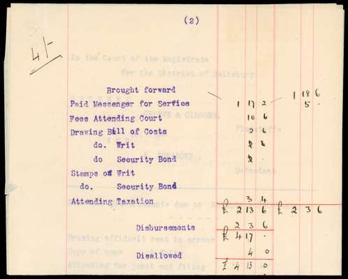 Rhodesia 1913 Court Fees document with 3d and 1s Double Heads