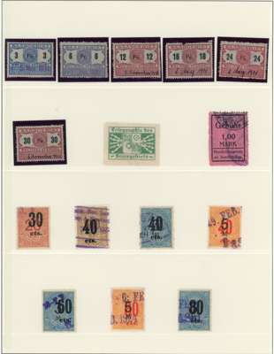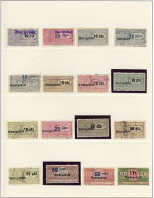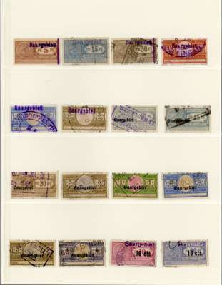 Saar: 1920s accumulation with Stempelmarke handstamped Saargebiet with values to 500m, later issues with Saargebiet part of design at top, Deutsches Reich Frachtstempel issues with Saargebiet handstamps unused or used, fair to fine condition (215)