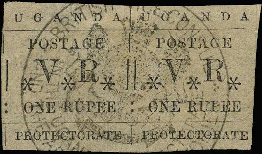 UGANDA Revenue. 1896 Typeset 1r black, a single and a pair, SG 60