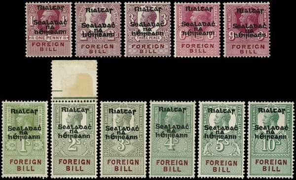 Foreign Bill: 1922 2d to 10s short set of 11 to 10s, KGV key types with Free state 'RIALTAS' overprint, each fine and fresh large part o.g. Very rare, believed by the vendor to be the only recorded mint examples. Booth 1/11