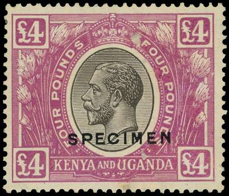 1922-27 £4 black and magenta, opt 'SPECIMEN', large part o.g. Trivial surface blemish at foot, otherwise fine. SG 98s cat £700
