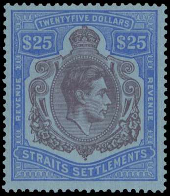 Malaya: Straits: Postal Fiscal: 1938 $25 purple and blue/blue, large...