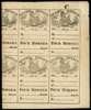 Hired Horse Duty: 1826 Mileage ticket for 4 Horses, Booth Type 54-A(c), half sheet cut vertically between the two central impressions leaving a block of four and two halves, with 'C' in margin at upper right. unobtrusive horizontal crease through each row and manuscript recipe on reverse, still a fine and very rare piece of social history. Booth 4-8