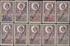 Inland Revenue: c. 1904 group of ten imperforate colour trials in deep purple, printed on thick card, denominated 5s, each endorsed 'Cancelled' in black ms with 'INLAND REVENUE' in a different colour in each appropriation tablet. A highly attractive and very rare set.