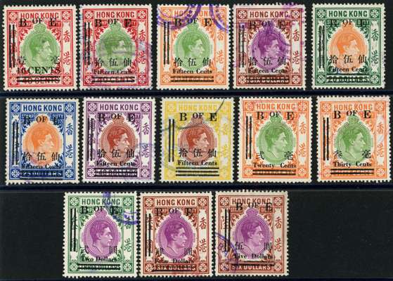Bill of Exchange: c.1954 KGVI Provisional Surcharges set of 13 to $5 on $6 purple and red-brown, each fine used. Difficult to assemble.