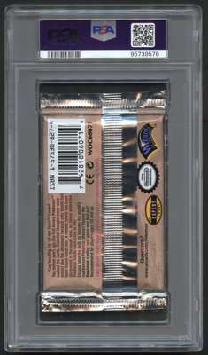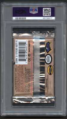 A PSA 9 wax and/or cello pack appears to have all the attributes of a PSA 10 but may exhibit one of the following flaws: a slight touch of corner wear (absent a hole or tear in the wrapper), minor toning or soiling to the seal on the reverse or a slight centering imperfection to the wrap. The centering of the pack text and image must be 75/25 or better. In addition, the pack must be "fresh" in appearance and free of any water or mildew damage to the wrapper or gum in order to qualify for this grade.
