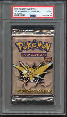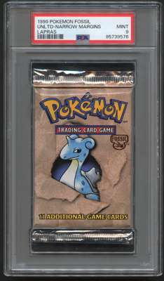 This lot contains an art set of PSA graded Unlimited Fossil Booster Packs; Aerodactyl, Zapdos and Lapras.