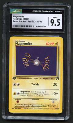One thing about Pokemon, every Pokemon is someone's favourite! Here's a 1st Edition Magnemite from Team Rocket!Authenticated and graded by CGC and awarded a perfect Gem Mint 9.5.
