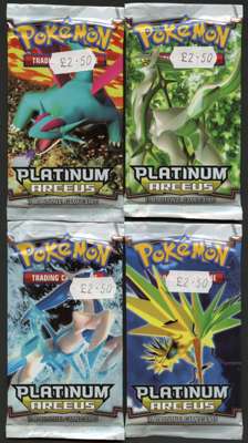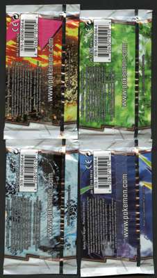 This lot contains 4 factory sealed booster packs featuring all four artworks. This item comes from the vault of a former local games store owner and as such has been in storage for the last ten years. It still has its original ‘£2.50’ price sticker on the front! This pack has been directly taken from an opened booster box that was on their shop shelf ten years ago and is totally unweighed!