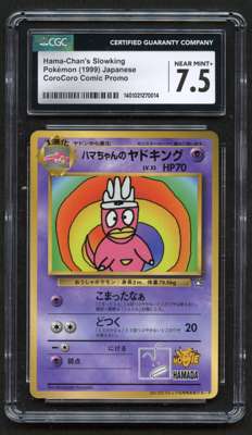 This Japanese exclusive promo from the iconic Coro-Coro magazine features the very rare Hama-Chan's Slowking. This card first released in 1999 and had been graded and authenticated by CGC and awarded a NEAR MINT+ 7.5.