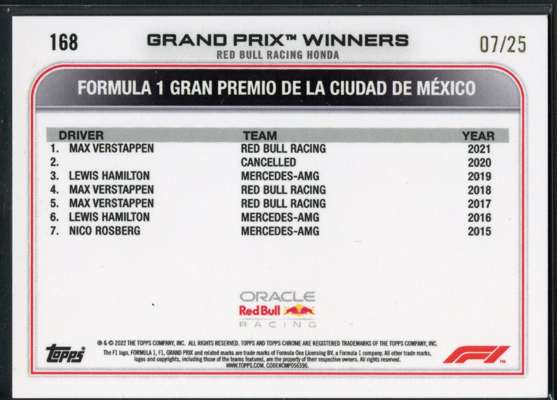 2022 Topps Chrome Max Verstappen #168 Orange Wave Refractor, ungraded but in Near Mint condition. This card is numbered 07/25.