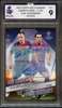 2023 Topps UCC Flagship Iniesta/Xavi Dual Autograph, numbered 17/25 and graded a 9 by MGC.