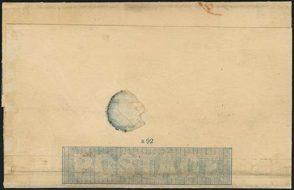 1840 2d blue Mulready letter sheet, stereo a92, to London on August 4th...