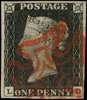 1840 1d black plate 3 (LD), four even margins, cancelled with crisp red MC, fine used