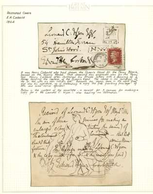 1861 (January 22nd) large part entire, London to Amsterdam, franked at 1s10d , artist and son of Henry Corbould, who's sketch of the Wyon head from the London City Medal was used for the 'Penny Black'. Edward Henry similarly followed his father's footsteps and produced the ''Britannia'' design used for Mauritius, Barbados and Trinidad adhesives. The covers both feature illustrations resembling Queen Victoria in the place of a stamp; with one being a crude representation with his initials at foot, (with 1d red adhesive at foot) the other a more refined sketch of the Queen and endorsed 'Local' and unfranked. Edward Henry often adorned his private letters in such a way, in an attempt to avoid paying postage due to his supposed privileged status, very fine and scarce, important items.