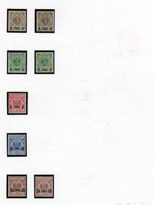 1893-1920 mint and used collection arranged on album leaves including 1893 2p on 3pf to 25p on 50pf with selected shades, 1896-99 2p on 3pf to 25p on 50p, 1901 No wmk 2p to 3m, 1905 Currency charge 2½h to 60h, 1905-20 2½h to 3m with additional 2r mint; also Wuga provisional 7½h. Condition variable with many good to fine. (). SG 1-44