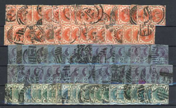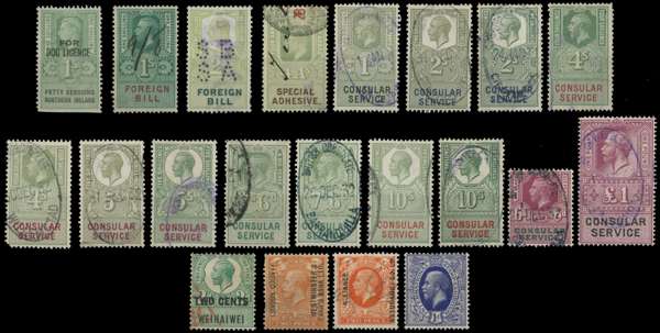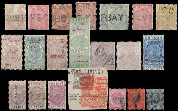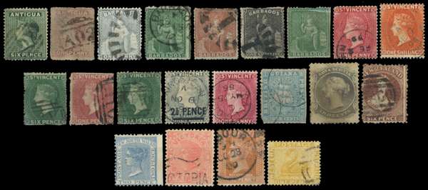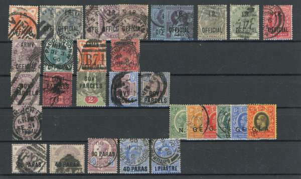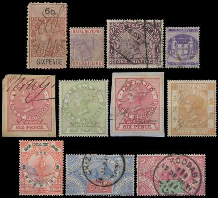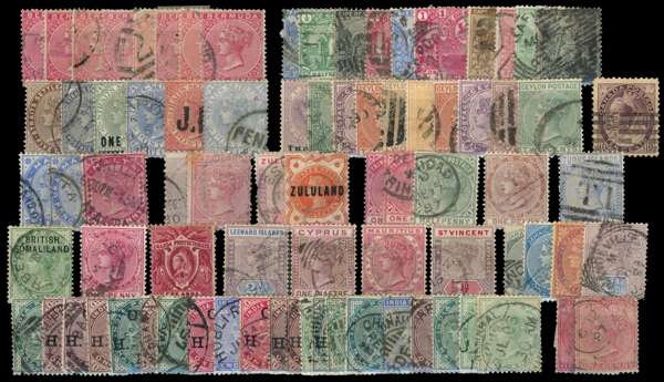 QV-KGVI mint and used selection on stockcards with strength in varieties, including Bahamas 1920 1d carmine wmk sideways reversed (SG 107x, Cat: £375), Barbados 1947 1d on 2d carmine with Broken ‘E’ variety, Fiji 1938-55 ½d with extra palm frond variety, Great Britain departmental officials (not guaranteed) Hong Kong 1946 30c with Extra Stroke variety, Zanzibar 1908-09 1r yellow-green with wmk sideways, and an array of revenues. Mixed condition with fine. (Hundreds).