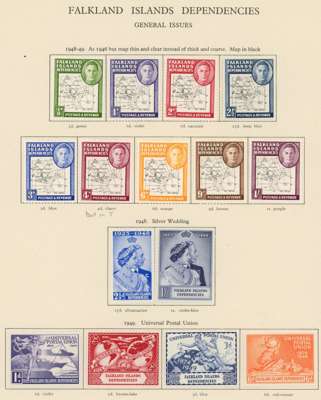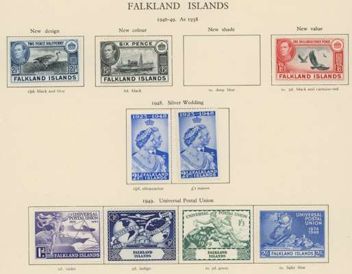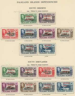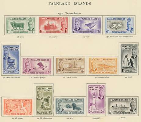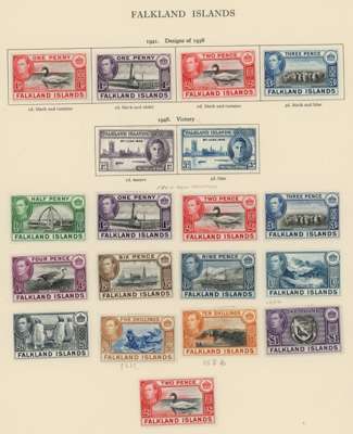 FALKLAND ISLANDS 1937 to 1952 mint collection on leaves including 1938 to £1 including shades, another £1 unmounted mint,