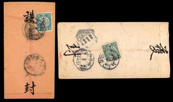 China two 1910s local 3c Coiling Dragon covers from Yutzi