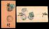 1912 two red band envelopes, one with further green design, both franked 3c Coiling Dragon Republic overprints of different types with Yutze and Peking cancellations